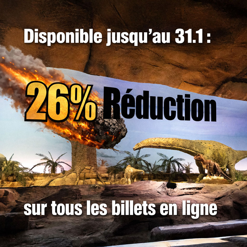 Bénéficiez de 26% de réduction sur tous les billets en ligne pour GONDWANA - Das Praehistorium. Utilisez le code promo : GONDWANA2026